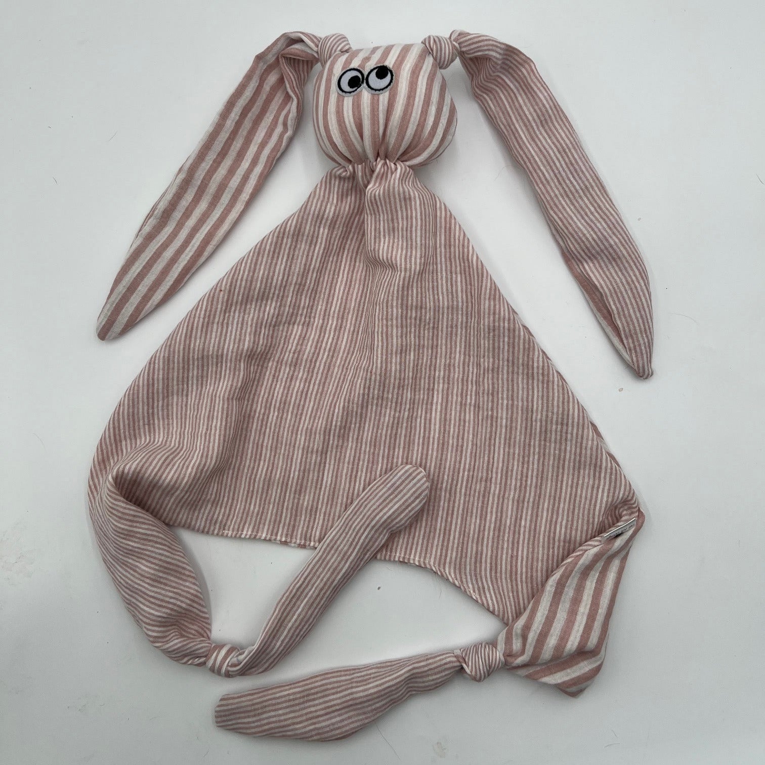 - Détails pratiques : longues oreilles nouées à la base, conçues pour accrocher une sucette ou un petit accessoire.