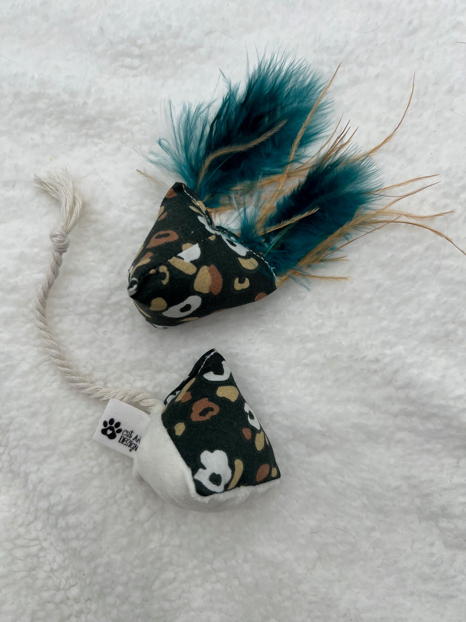 Deux petits jouets en forme de berlingot, pensés pour varier les textures, les sons et les mouvements afin de maintenir l’attention et l’enthousiasme de votre félin.