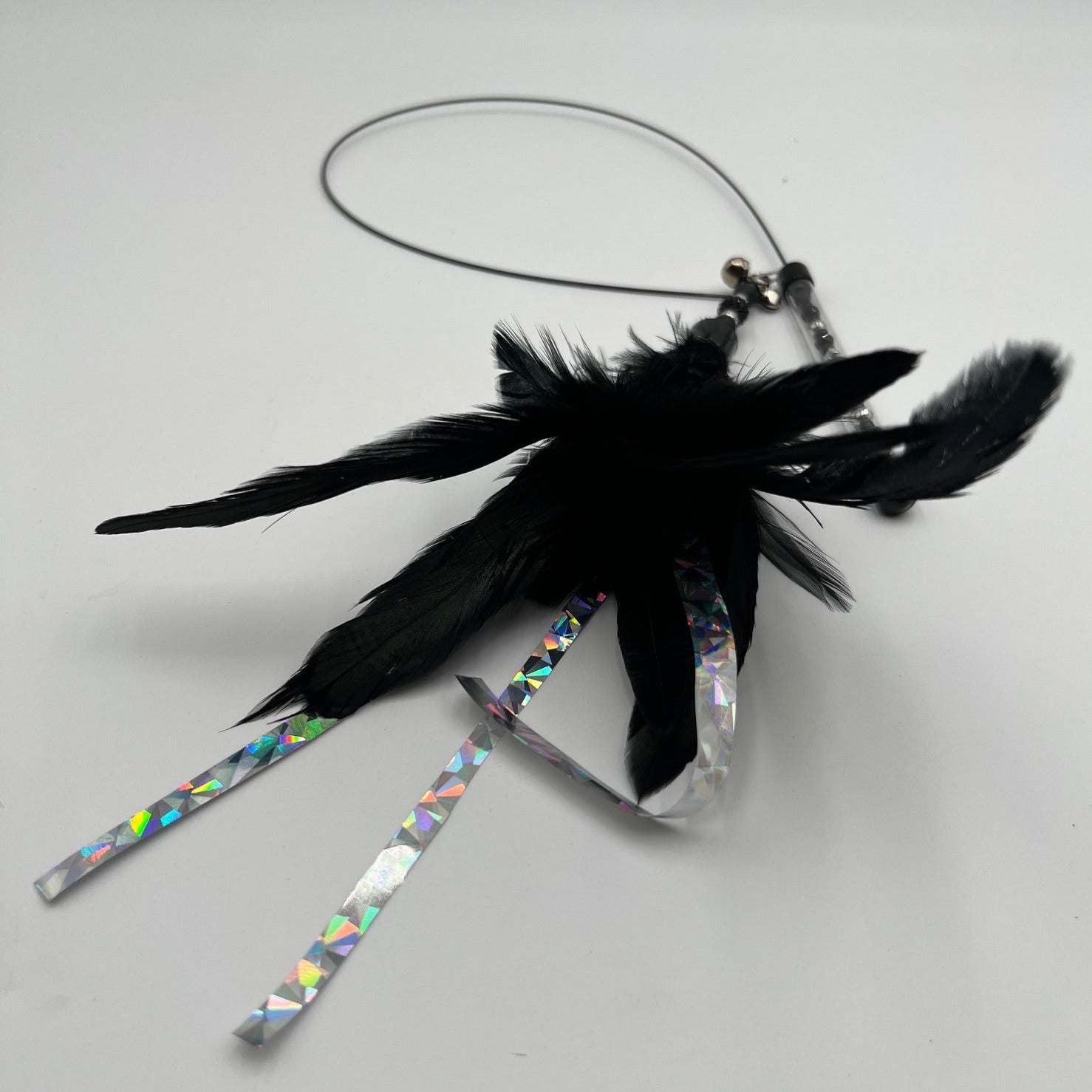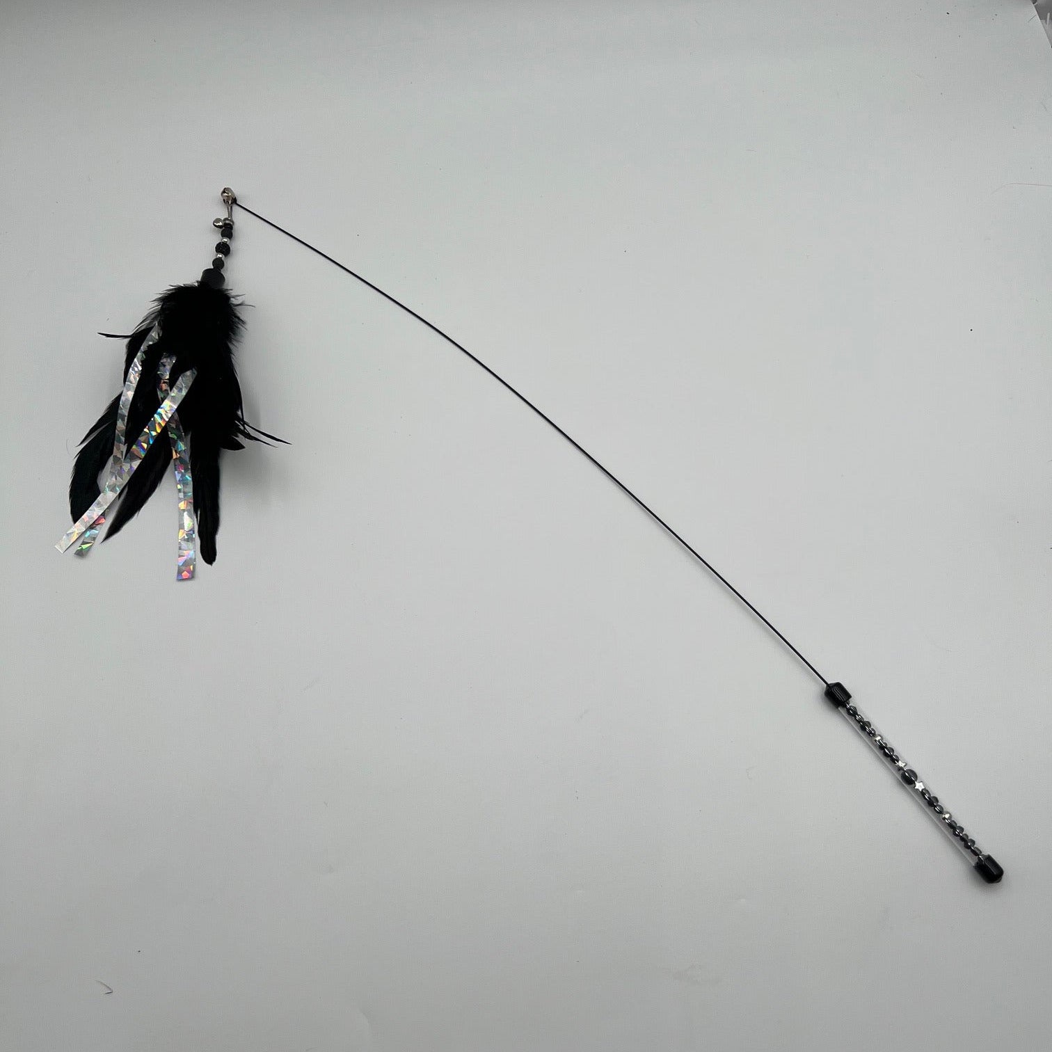 Avec son look de canne à pêche, le Plumeau Swing allie élégance et mouvement. Son manche en perles et sa longue tige métallique souple qui donne une amplitude de jeu irrésistible. À son extrémité, une tête spéciale mêlant perles, grelot et plumes naturelles capte l’attention du chat et réveille son instinct de chasseur.