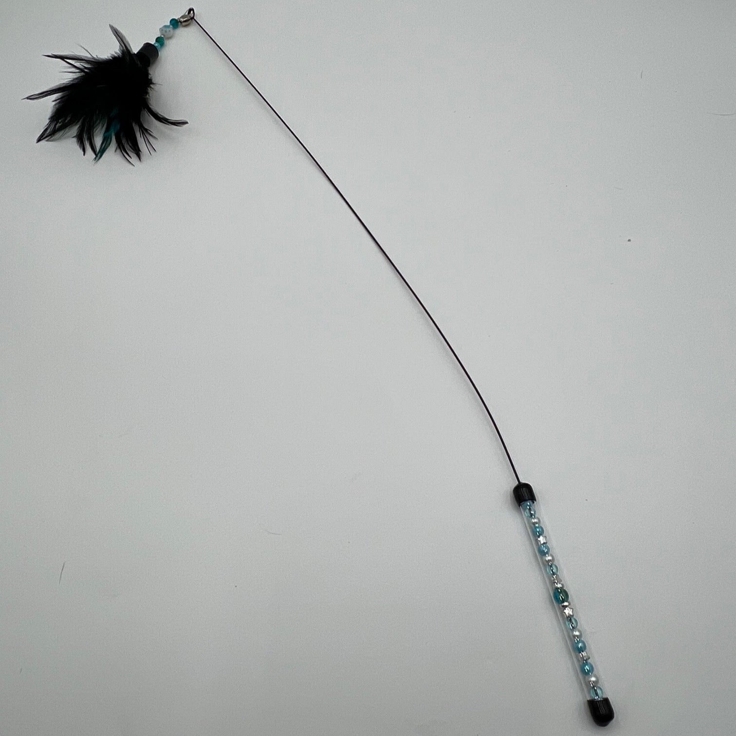 Avec son look de canne à pêche, le Plumeau Swing allie élégance et mouvement. Son manche en perles et sa longue tige métallique souple qui donne une amplitude de jeu irrésistible. À son extrémité, une tête spéciale mêlant perles, grelot et plumes naturelles capte l’attention du chat et réveille son instinct de chasseur.