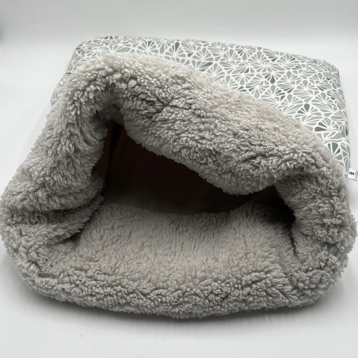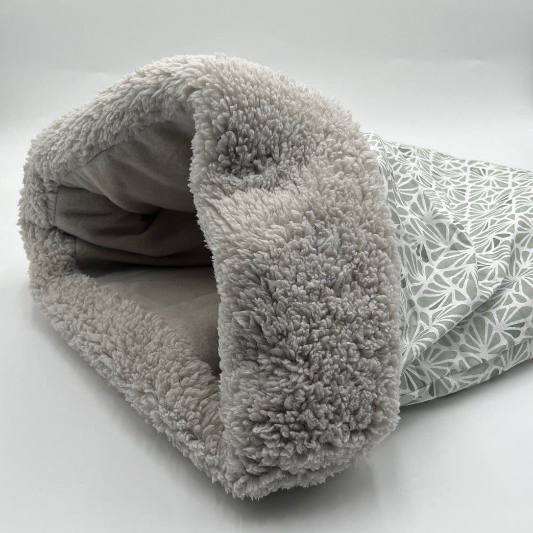 - Matière & Coloris : Coton mosaique sauge/ polaire grise / sherpa grise