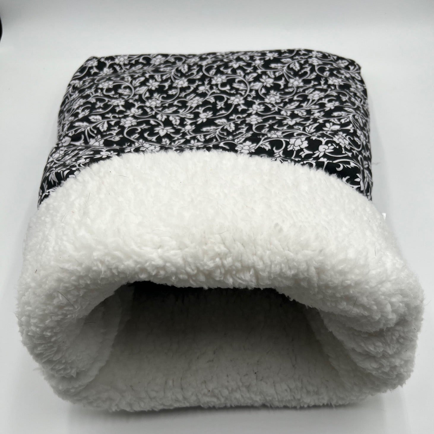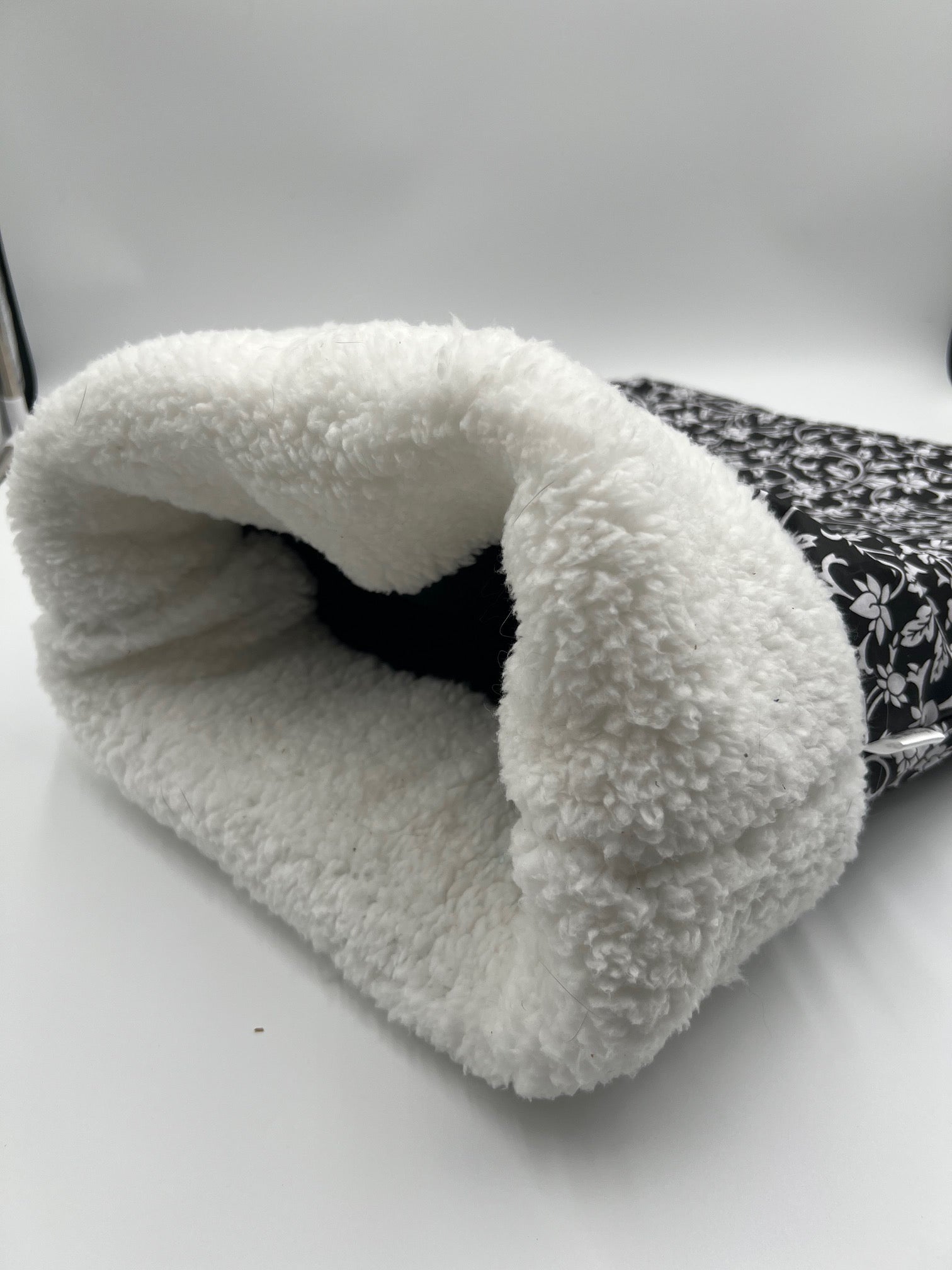 - Matière & Coloris : Coton feuille noire/ polaire noire/ sherpa blanc