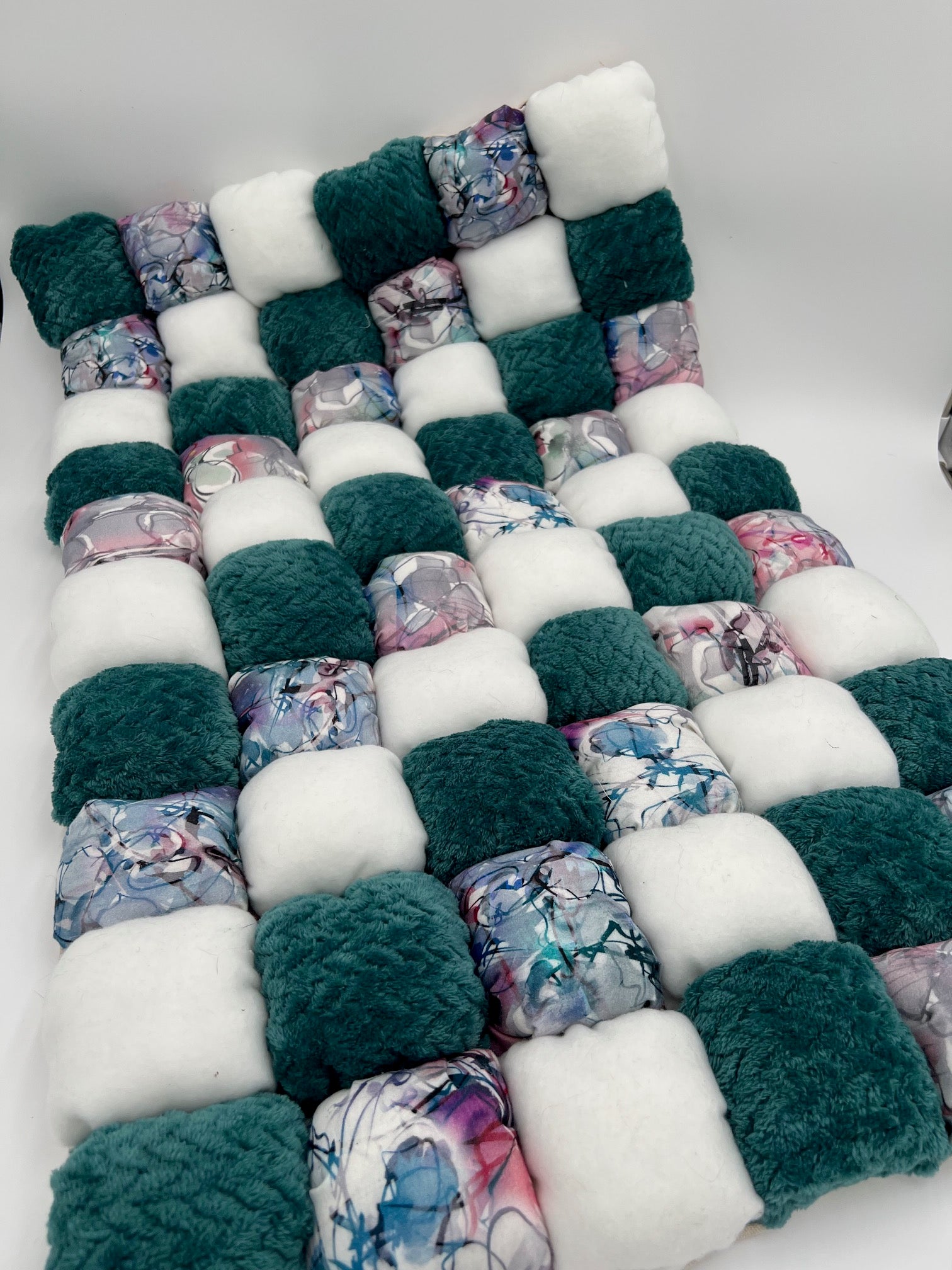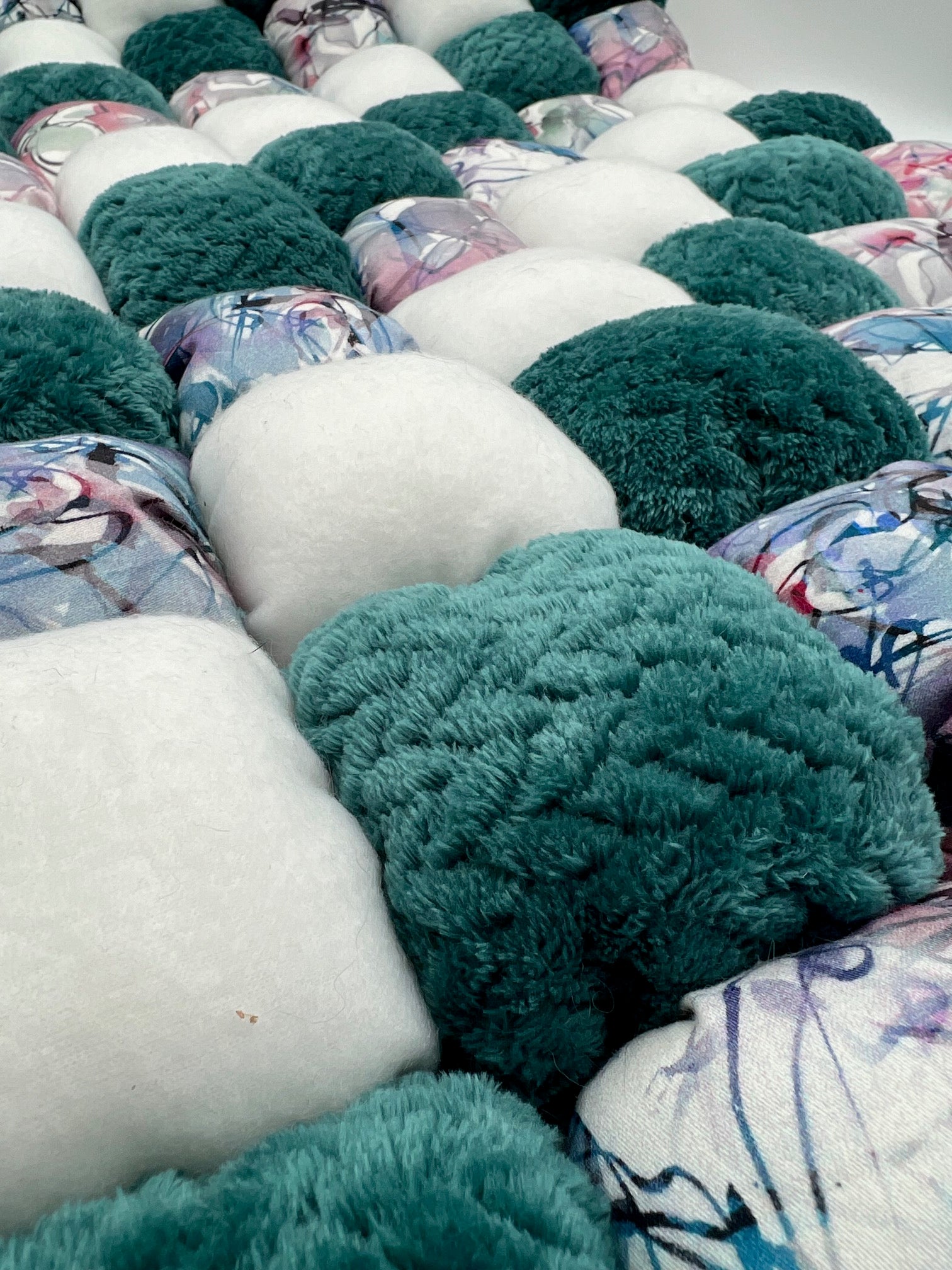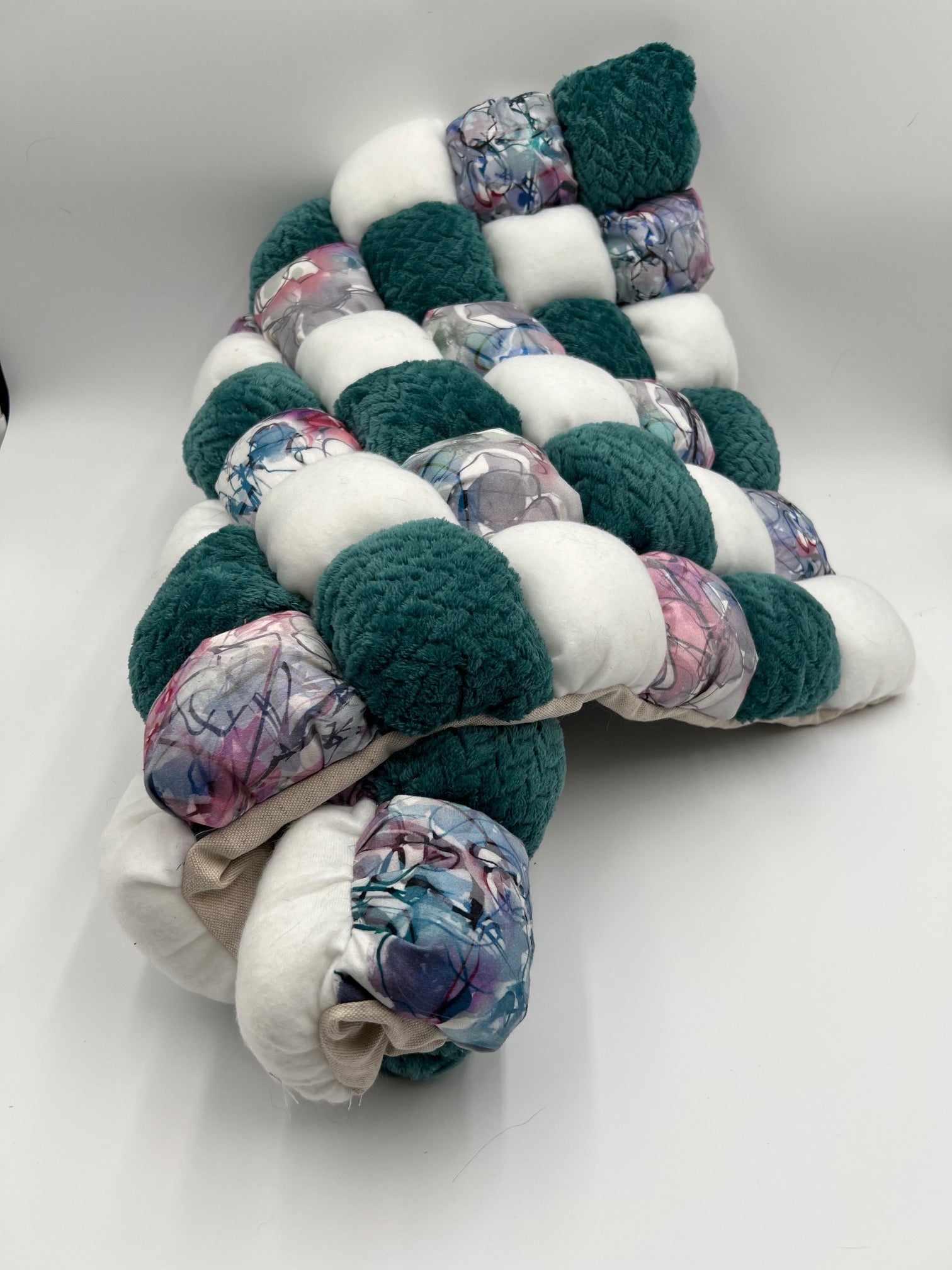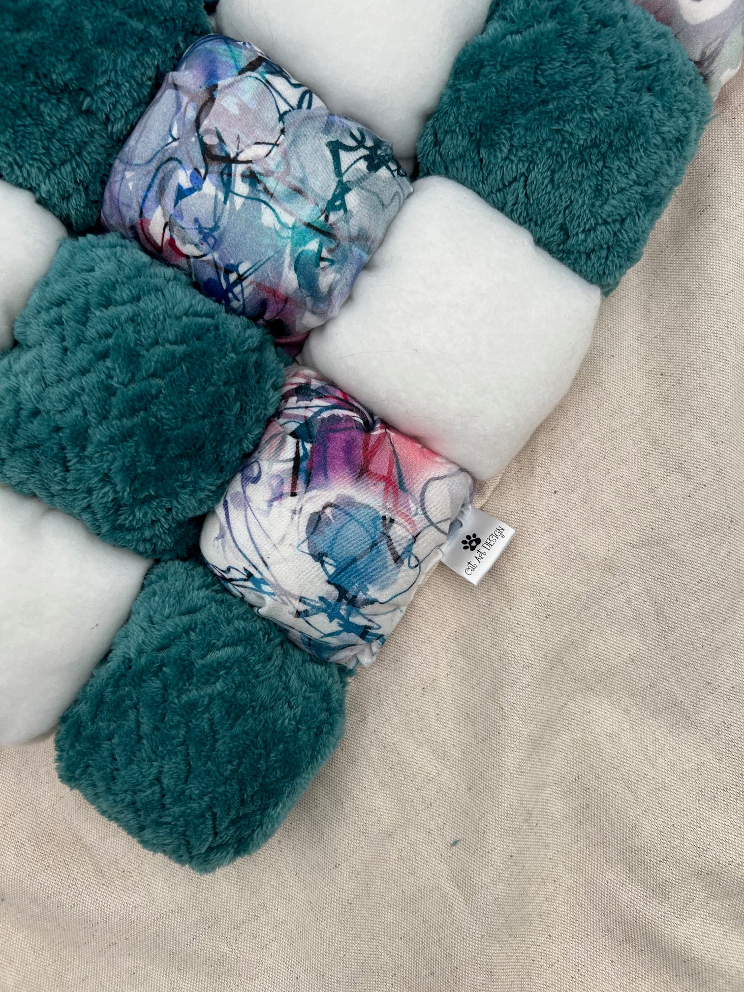 - Matière & Coloris : coton satiné Graffiti / polaire tresse bleu canard / polaire blanche