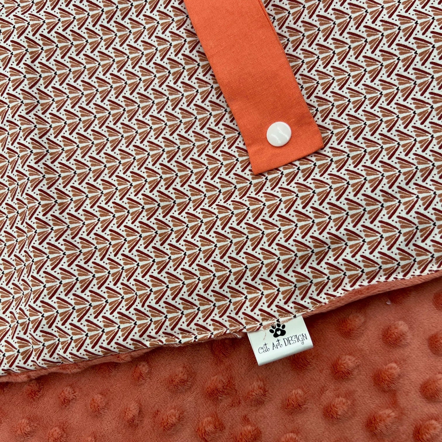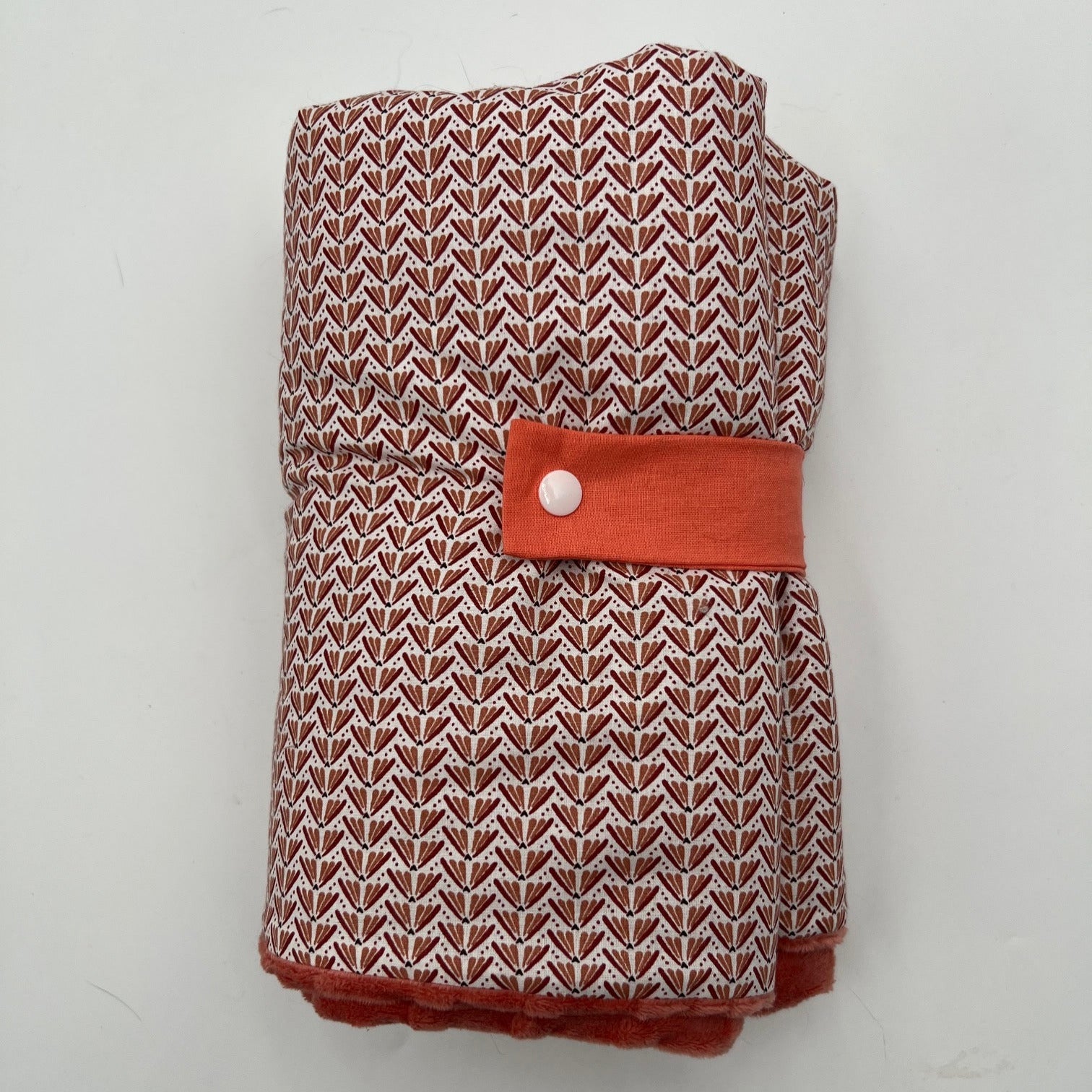 - Coloris : coton Geo marsala/ minky boule peche