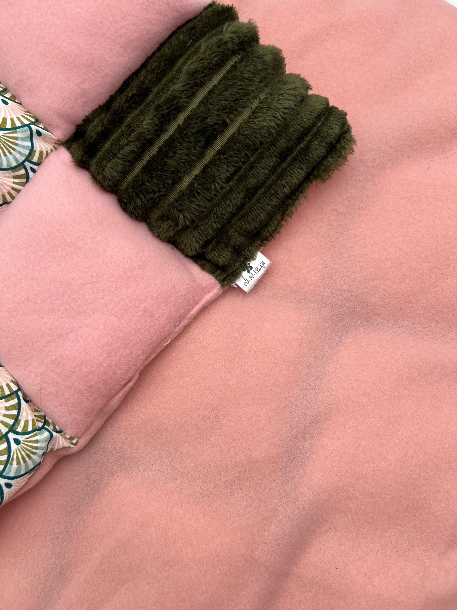 - Matière & Coloris : coton shell vert / polaire côtelée verte / polaire rose
