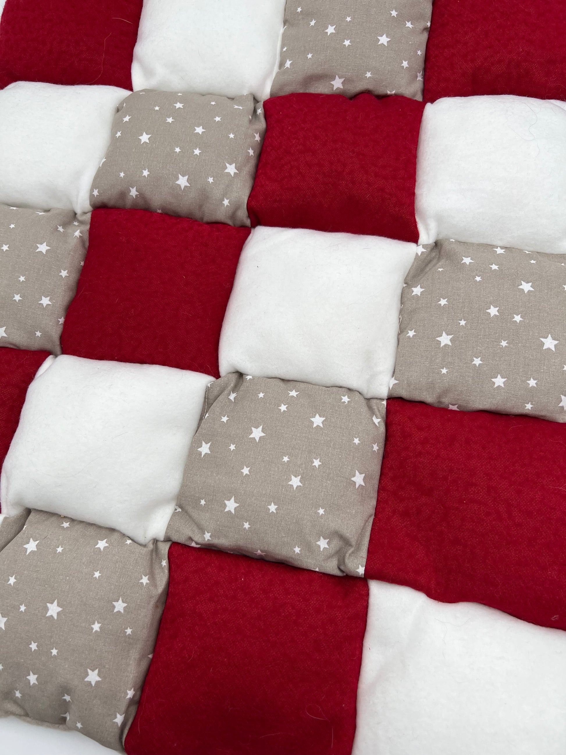- Matière & Coloris : coton étoile nude / polaire blanche / velours de laine rouge