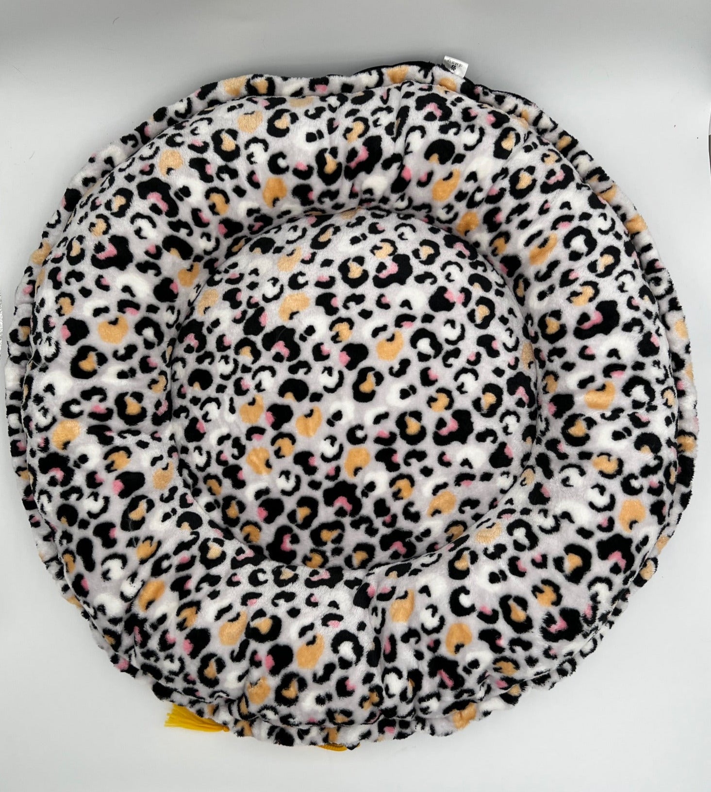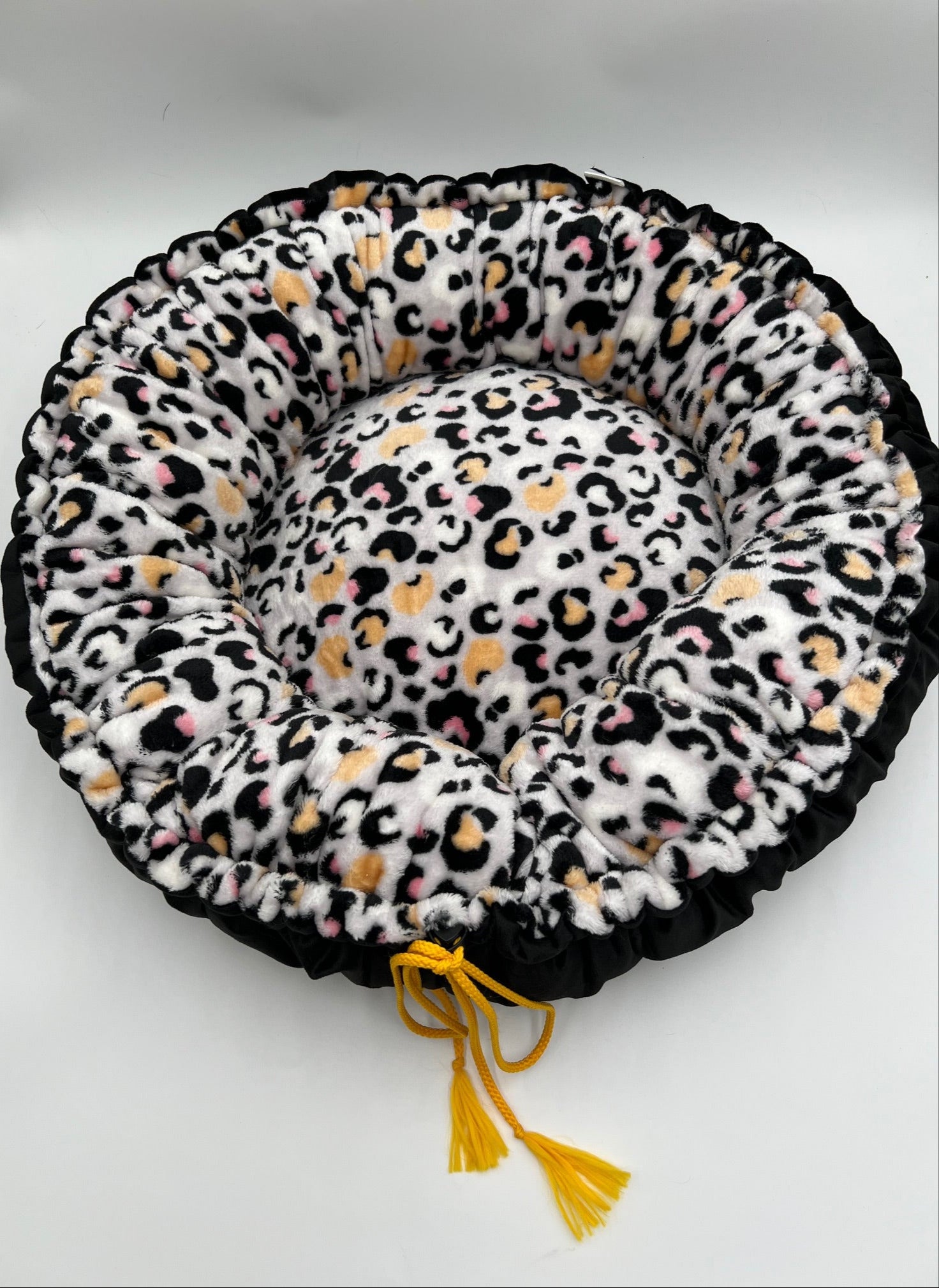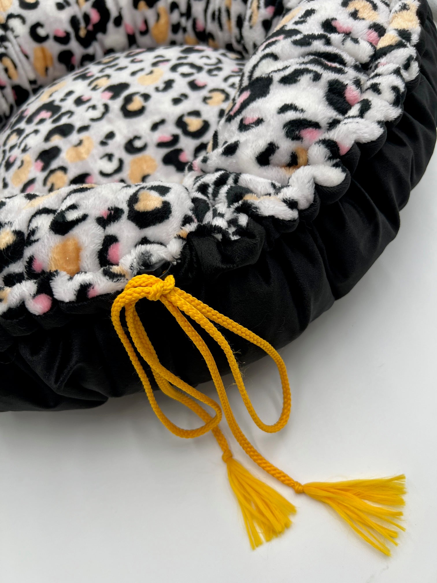 - Matière & Coloris : polaire léopard multicolore / velours ras noir