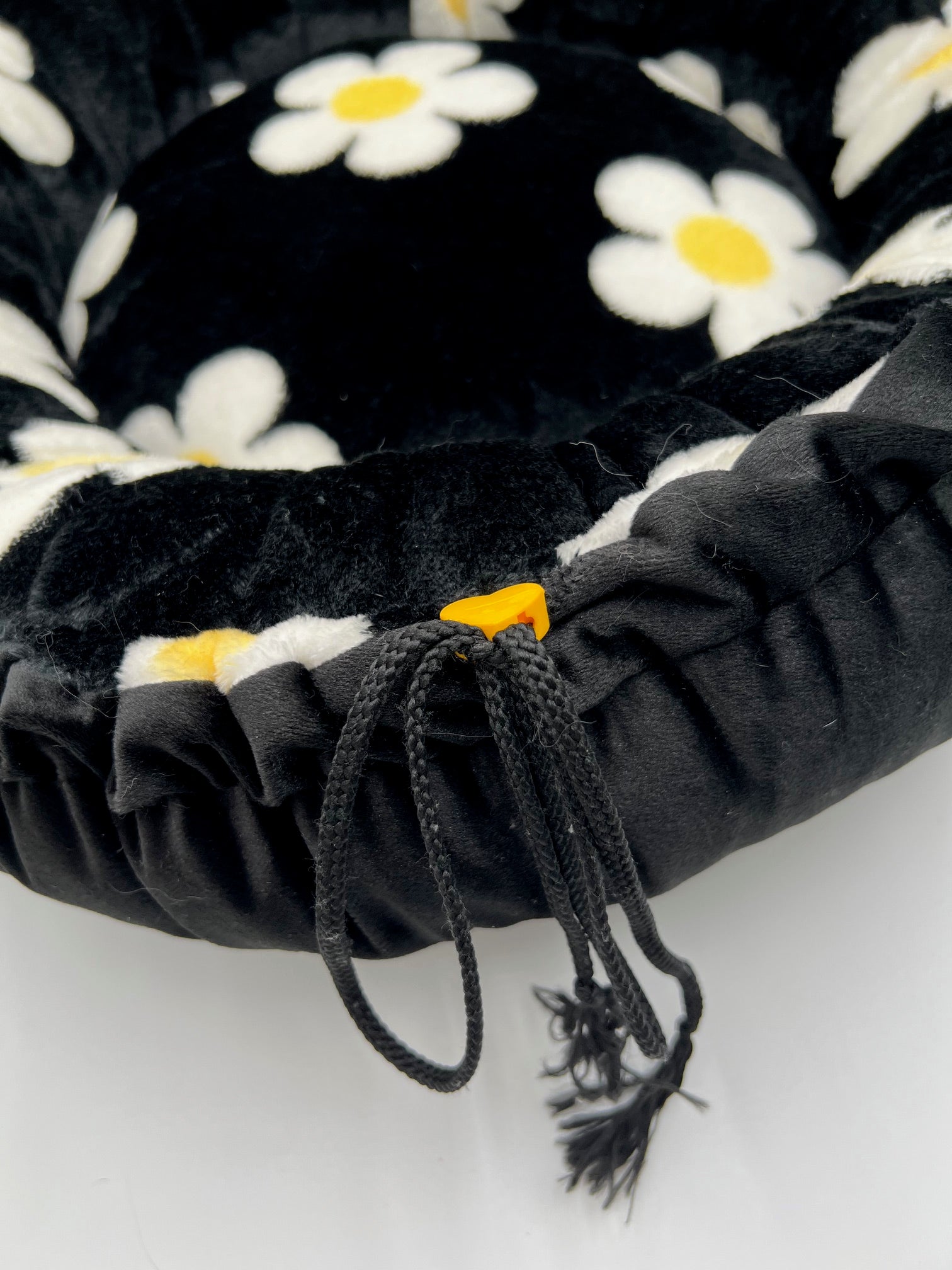 - Matière & Coloris : polaire noire fleur blanche / velours ras noir